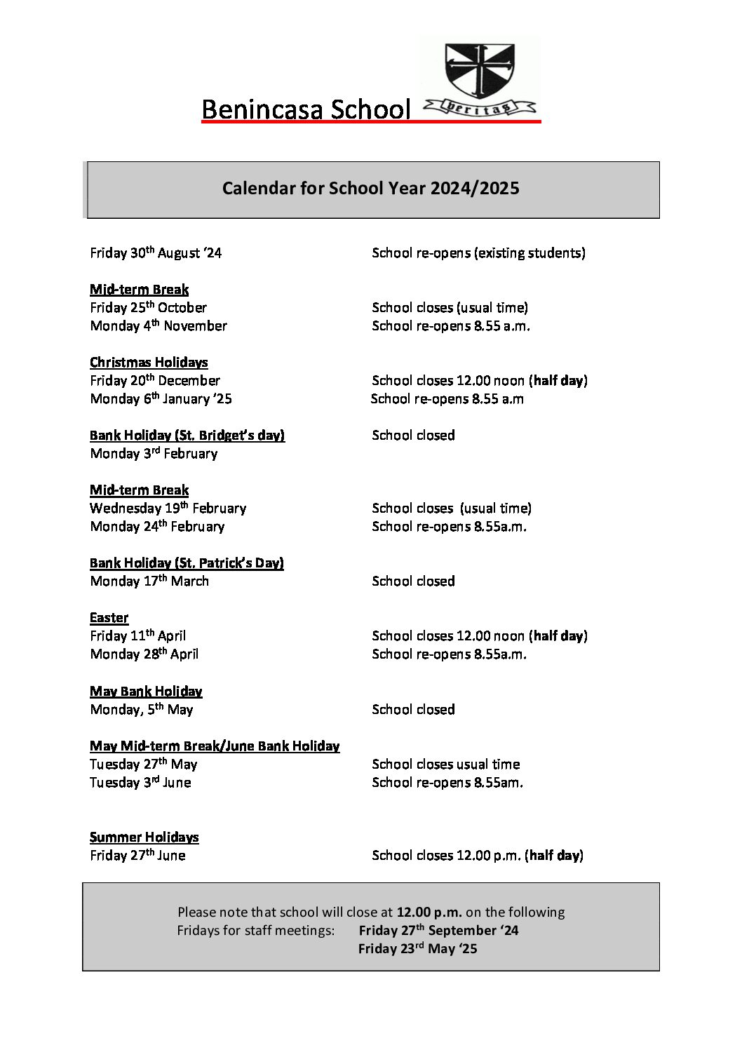 Stay up to date with what’s happening at Benincasa Special School.